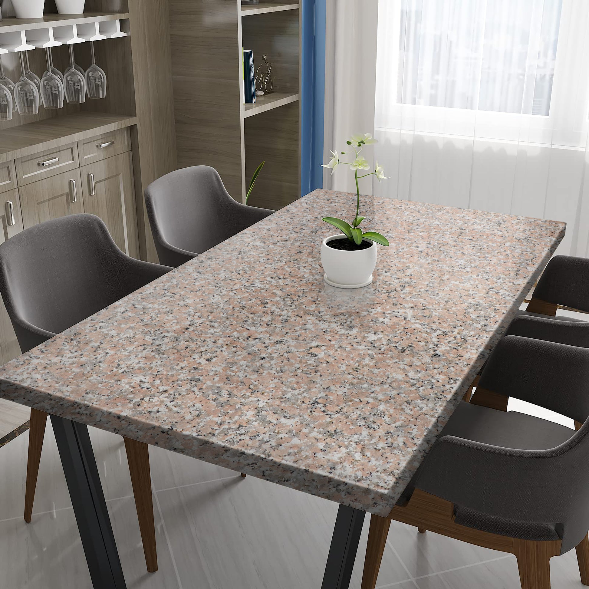Pink Granite is a beautiful, warm and inviting color. It is one of the most popular colors used in kitchens across the country. The warm, earthy brown tones add a sense of warmth to any room. It is often used in kitchens, dining rooms and sunrooms. It also looks great on countertops as well as outside patios or pools.